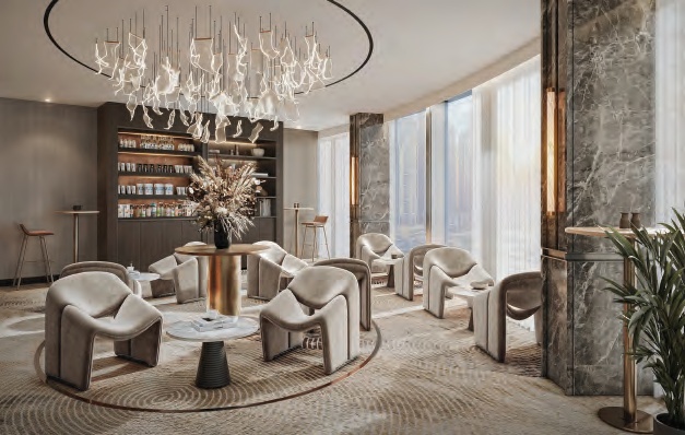 A VIP lounge for in-house guests booking Executive Club and Suite rooms. It features a European-inspired breakfast selection, a curated daily à la carte menu with refined snack options, and evening drinks accompanied by canapés. Serving an extensive selection of international wines, handcrafted cocktails, mocktails, beers, premium spirits, and bottle service.